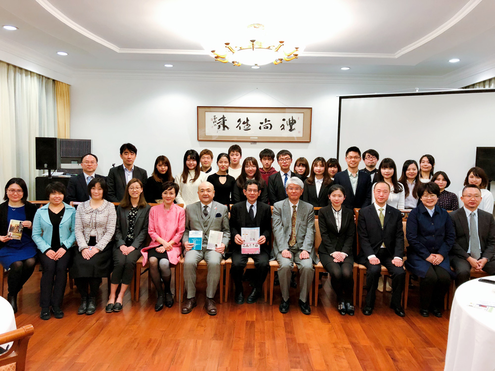 (片山和之总领事和段跃中社长与av在线 学子交流合影)