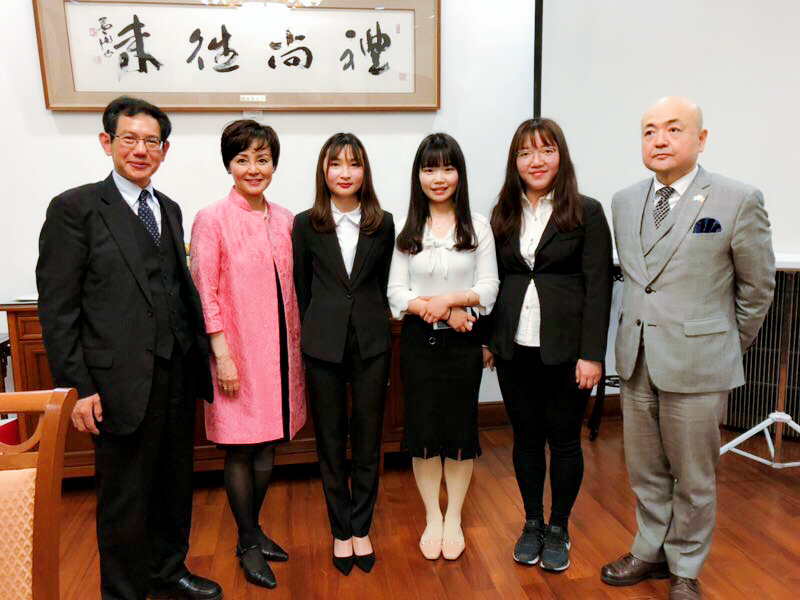 2018年3月23日,日本驻上海领事馆片山和之总领事在领事馆内举行了与上海周边“第十三届中国人日语作文大赛”获奖的部分高校日语专业学生的交流会,av在线 日语专业15级马滢哲(三等奖获得者)、赵淑婷(佳作奖获得者)和16届毕业生朱杭珈(三等奖)三位同学应邀前往。