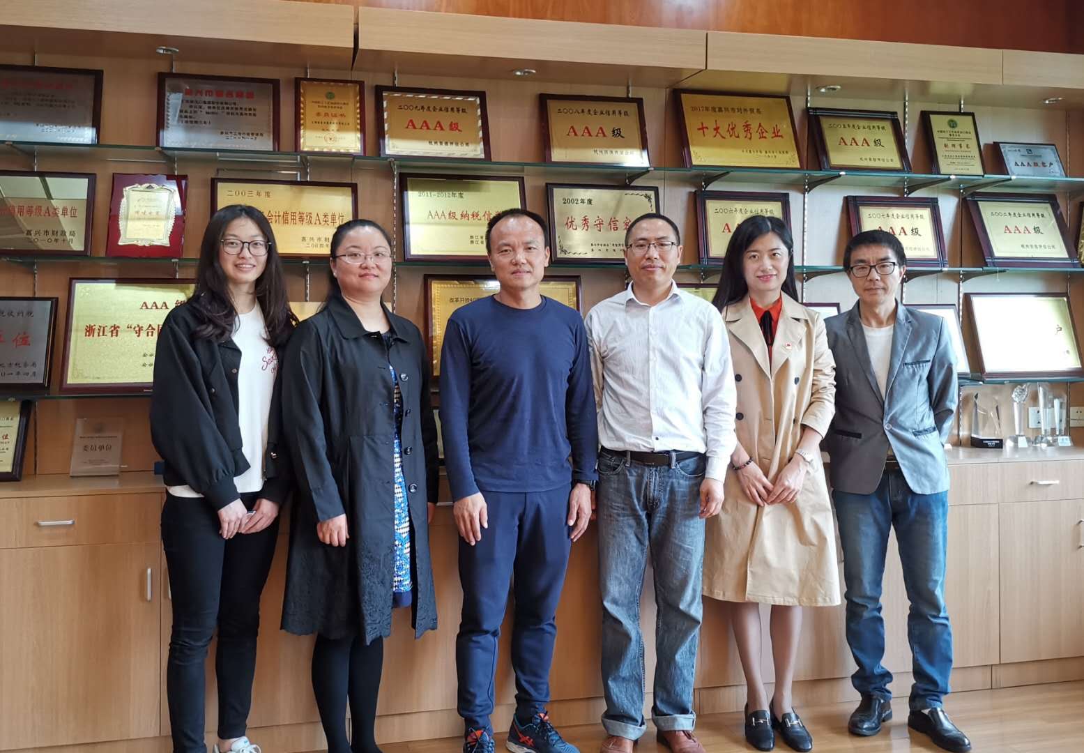 4月23日av在线 副院长喻锋平、党委副书记周钰和日语系副主任孙玉慧一行三人到浙江汇信进出口集团股份有限公司、海宁欧兰纺织有限公司、海宁原动力教育和浙江德俊新材料有限公司看望av在线 2019届英语系、日语系毕业实习生,并与企业领导进行了洽谈交流。
