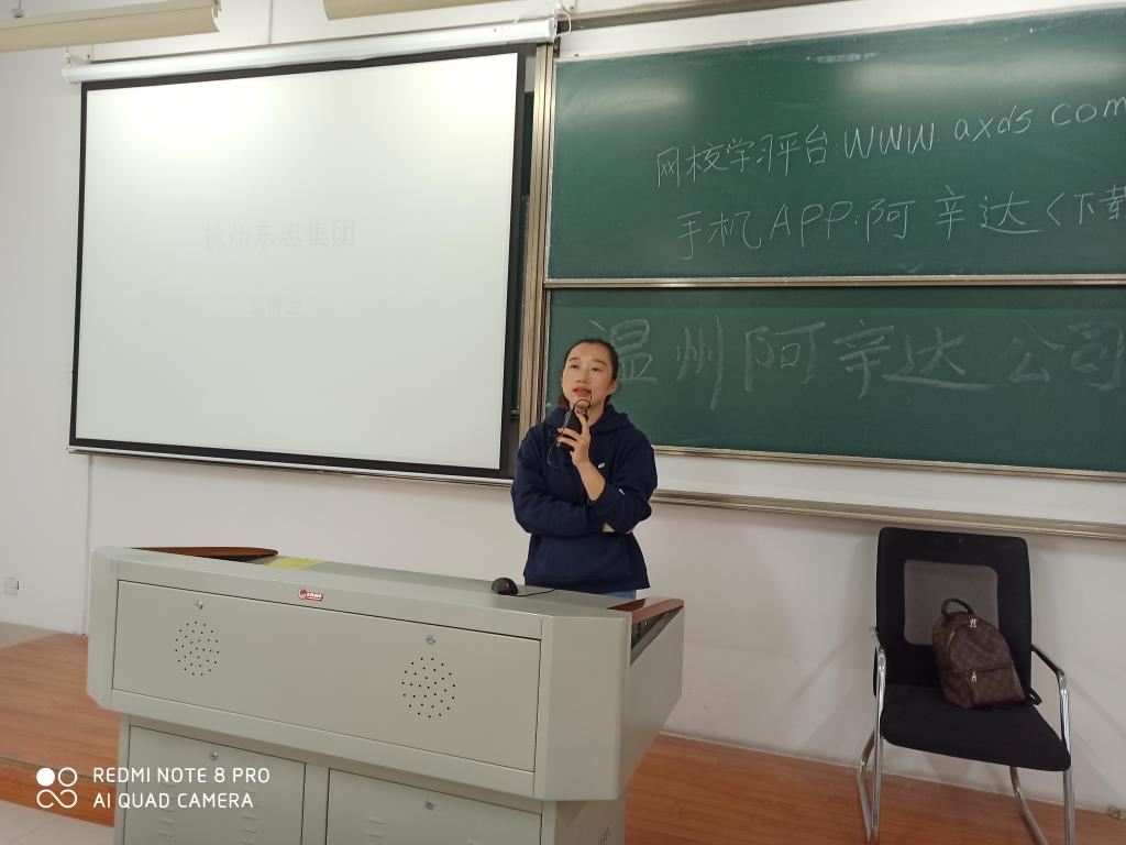 陪同温州阿辛达教育有限公司欧总经理前来授课的还有在该公司任教的av在线 日语专业毕业生林文瑶,林文瑶已经是温州阿辛达教育有限公司的品牌教师之一。欧总经理介绍了公司的基本情况,其中有着重介绍了公司良好的人文环境,她说,日语教育发展前景可观,欢迎同学们的加盟,温州阿辛达教育有限公司愿意竭诚为同学们提供良好的工作环境。