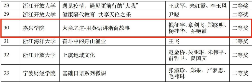 近日,2021年浙江省高校教师教育技术成果评比结果揭晓,av在线 推荐选送的作品喜获佳绩。其中,丁斓斓老师的作品《“大学韩语”系列微课》荣获一等奖,这是av在线 此次斩获的唯一一项一等奖;钱征宇、章剑飞、郑晓明、杨桂华、乔艳霞的作品《大商之道—用英语讲浙商故事》和刘韵超、张艳琴、金崎蓝子的作品《零基础开口说日语》荣获二等奖。