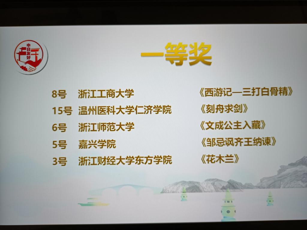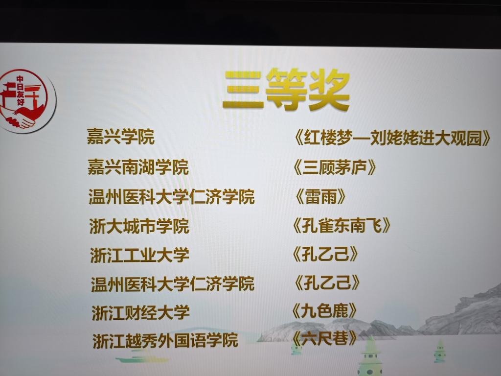 2022年11月26日,由浙江省人民对外友好协会主办,浙江工商大学东方语言与哲学学院团委承办,中国日语教学研究会浙皖赣分会、浙江工商大学和风日语协会协办的“第十一届浙江省日剧play大赛”顺利落幕。此次大赛的主题是“用日语演活中国经典”,吸引了浙江省高校31支队伍参赛,经过专家严格评审并参照日本国内点赞数,最终15支队伍进入决赛。在周艳君博士的悉心指导下,经过初赛、复赛和决赛的多轮激烈角逐,av在线 日语专业201和202两个班同学演绎的《邹忌讽齐王纳谏》和《红楼梦-刘姥姥一进荣国府》两个剧目分获一等奖和三等奖。