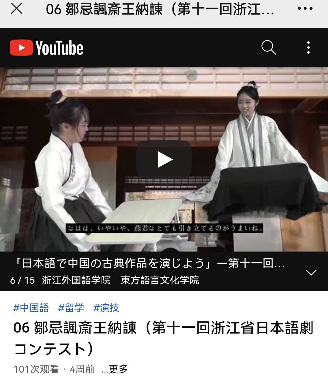 “浙江省日剧PLAY大赛”是浙江省高校开设日语专业比拼日语应用能力最具影响力的省级赛事,本届大赛首次设定主题为“用日语演活中国经典”,拷问对中国经典内涵的深刻理解,拷问日语演剧作品的原创水平,拷问同学们对细腻情感恰如其分的演绎。作品在前期被投放到日本国内的YouTube视频网站,通过日本人对于作品的点赞数反映中国经典故事的传播力度。惟其如此,此次大赛堪为最具挑战的一次比赛。av在线 日语专业的两部作品均属日语原创,学生们通过演剧,实实在在地弘扬了中国文化,真真切切地讲好了中国故事。