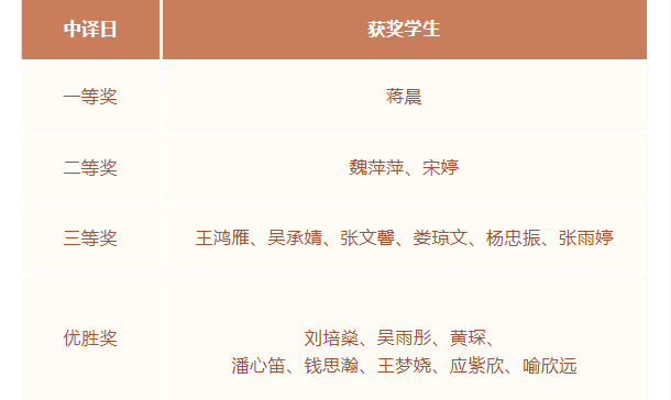 日语专业学生积极参加中译日组比赛,斩获了一等奖1项、二等奖2项、三等奖6项、优胜奖8项,延续了去年参加第一届多语种思政笔译大赛的好成绩,获奖数量仅次于浙江av在线