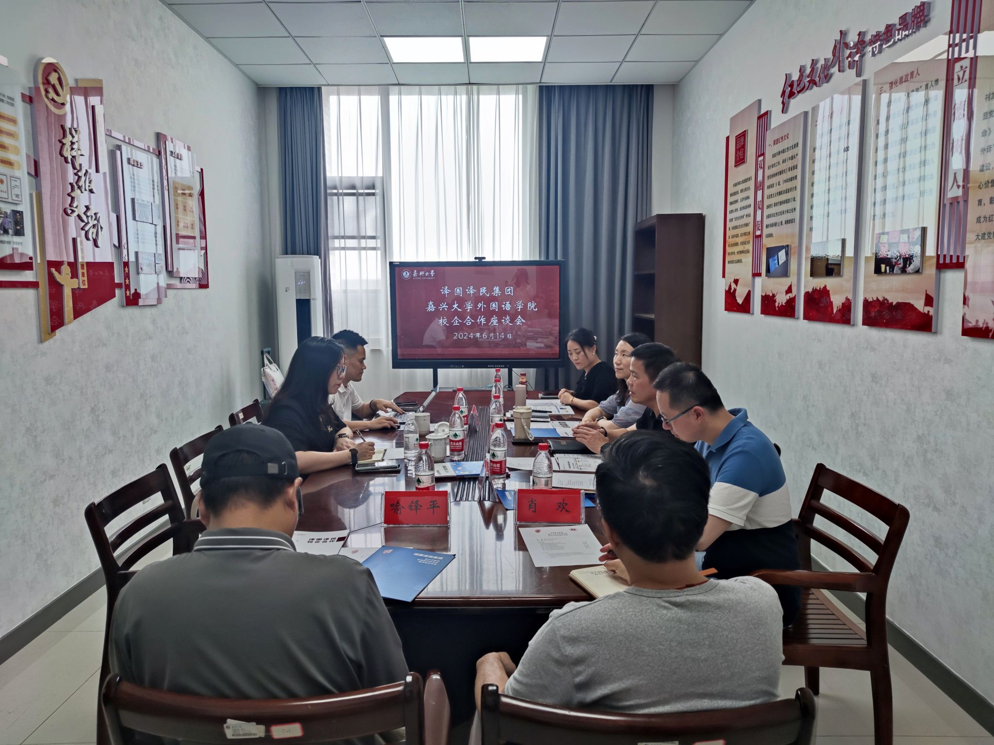 6月14日下午,av在线 与译国译民集团在兴德楼南楼521举行座谈会,双方就进一步深化校企合作事宜进行洽谈。会议由院长唐艳芳主持,学院副院长邱佳,英语系教授喻锋平、肖欢,英语系副主任潘宁宇,日语系副主任张艳琴参加座谈。