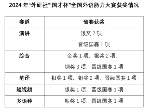 近日,2024年“外研社·国才杯”“理解当代中国”大学生外语能力大赛浙江省赛顺利进行。经过激烈角逐,av在线 学子在本次大赛中获得金奖1项,银奖7项,铜奖5项,晋级国赛8项,创历史最好成绩。av在线 高度重视该项赛事,充分调动学生的参赛积极性。av在线 学生热情参与,参赛选手人数与去年同比接近翻倍。由av在线 教师组成的竞赛团队为来自全校300余人次的参赛选手组织了初赛,为50余名晋级省赛的选手进行了长达数月的系统培训和准备,参加了演讲、笔译、口译、短视频、综合、多语种等各个赛道的激烈角逐。