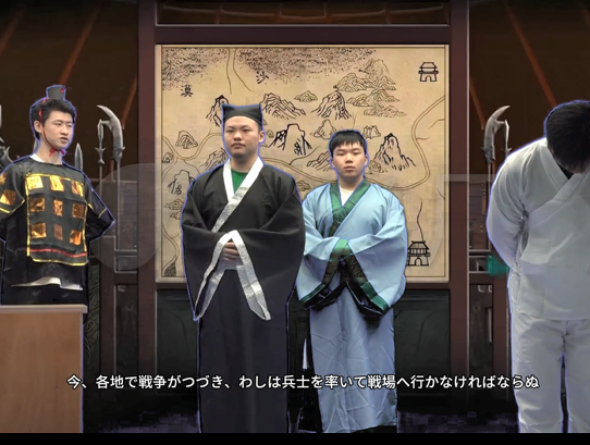 “浙江省大学生日剧PLAY大赛”迄今已举办十三届,是省内高校日语专业学生广泛参与的一项品牌赛事,旨在传播中国文化,提升浙江省高校日语专业学生日语应用能力。在收到赛事通知后,av在线 日语专业积极组织,认真备赛,最终选定中国古典《屈原明志》剧目。在指导教师张艳琴老师的积极推动和悉心指导下,参赛同学们利用课余时间,深刻领会屈原立大志的历史背景和来龙去脉,不断推演剧目细节,仔细推敲剧本日语表达,刻苦训练表演动作,直至完全满意为止。在录制过程中,同学们一丝不苟,情绪饱满,配合默契,一气呵成。在参赛现场,评委们对我们剧目的选定、作品创意和同学们的日语表达给予了很高的评价。