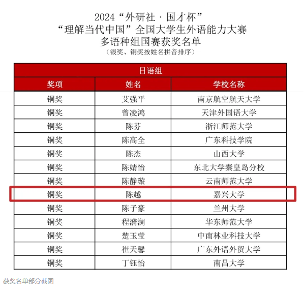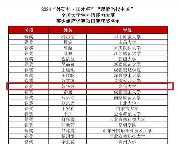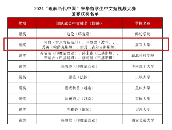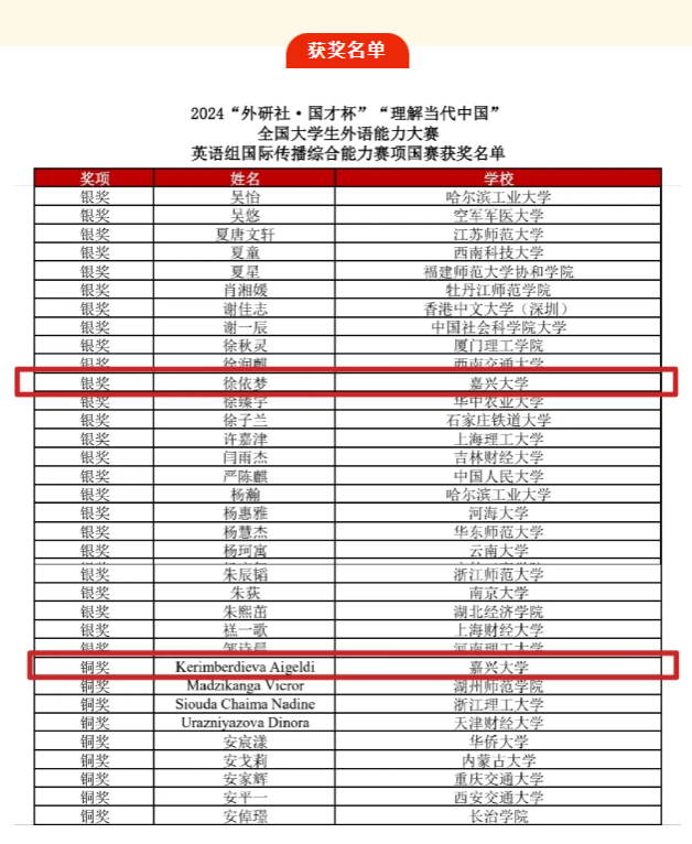 近日,2024年“外研社·国才杯”外语能力大赛落下帷幕,av在线 进入全国决赛的8名选手参加了综合、笔译、短视频、多语种等多个赛道的激烈角逐。本次大赛av在线 选手获得银奖1项,铜奖4项。其中英语国际传播能力综合组英语22级徐依梦获银奖,国经22级Kerimberdieva Aigeldi获铜奖;笔译组英语22级韩华成获铜奖;短视频国际中文组国经22级DZHUMABEKOV ABAI(阿白),国经22级Wiktoria Litkowiec(兰慧柔),工商管理23级KUNTORE SUIKIMZHAN(秀英),国经22级Kerimberdieva Aigeldi(新月)获铜奖;多语种组日语22级陈越获铜奖。