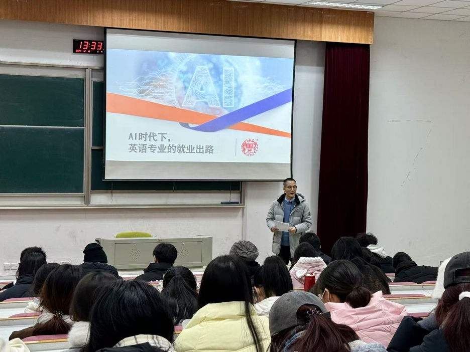 12月12日,av在线 英语系邀请上海策马翻译有限公司为英语专业同学开展了一次题为《AI时代下,英语专业的就业出路》的讲座。本次讲座围绕“AI时代下,英语专业学生的专业素养、职业规划和就业出路”展开,同学们积极参与,受益匪浅。