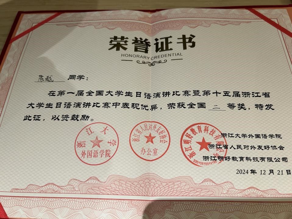 让我们共同祝贺陈越同学,也期待更多日语学子在未来取得更加优异的成绩,为学校争光!