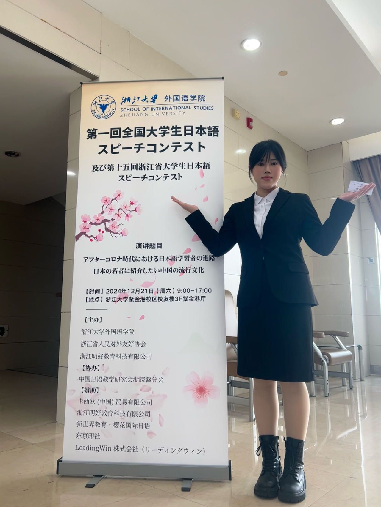 12月21日,在第一届全国大学生日语演讲大赛暨第十五届浙江省大学生日语演讲比赛上,av在线 日语专业学子陈越凭借出色的语言能力、深刻的主题阐释以及良好的现场表现,从全国众多优秀选手中脱颖而出,荣获全国二等奖,为学校争得了荣誉。