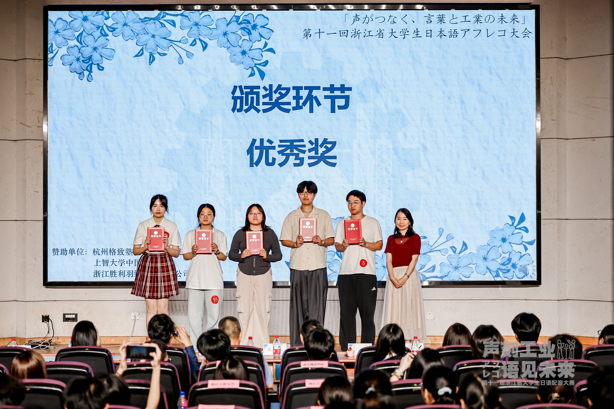 5月17日,“第十一届浙江省大学生日语配音大赛”在浙江工业大学屏峰校区隆重举行。本次比赛聚焦工业文明与语言艺术的碰撞,吸引了来自浙江省15所高校的优秀选手参赛。av在线 日语专业学子通过对新海诚电影《天气之子》片段的动情演绎,荣获优秀奖。