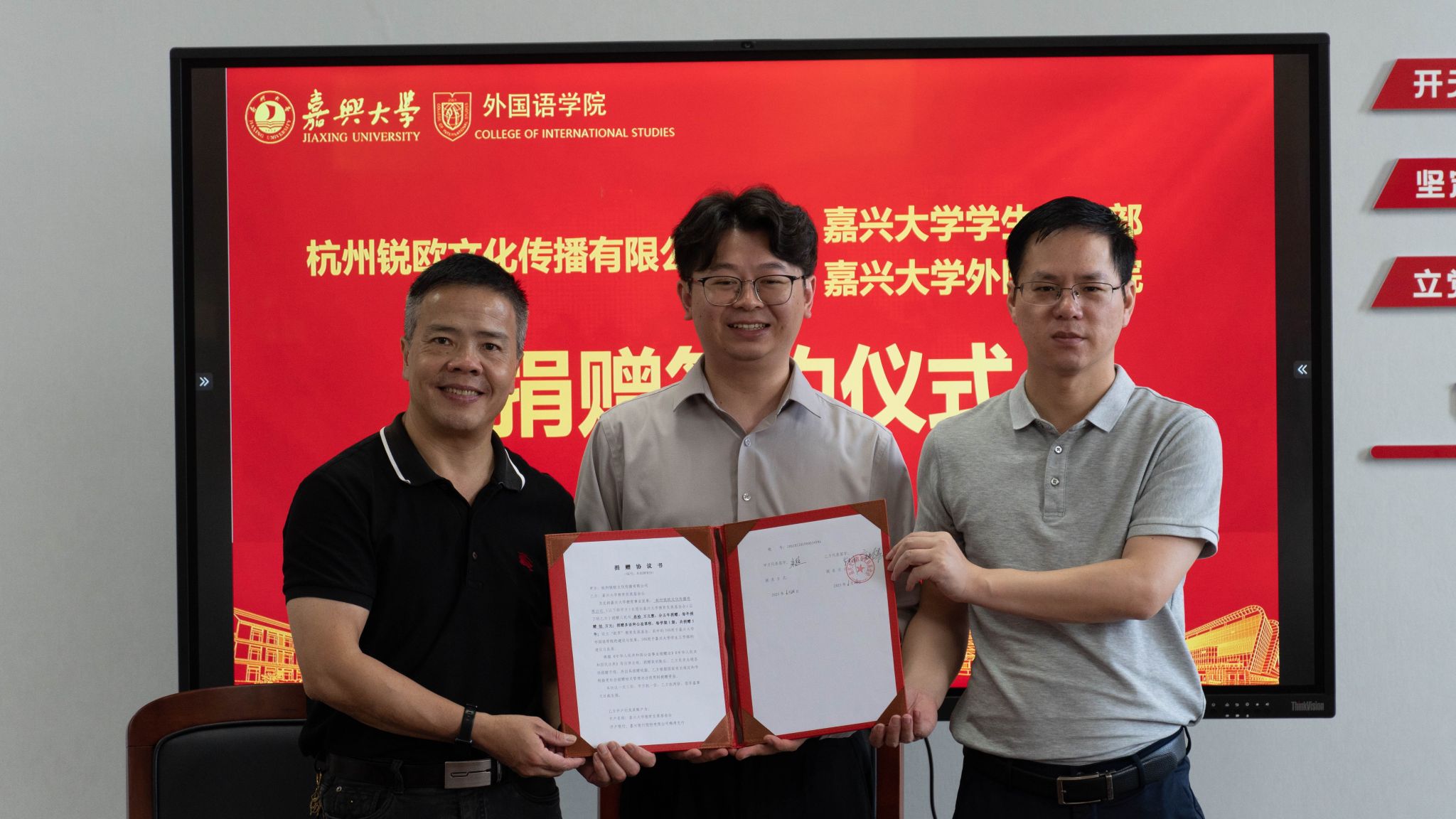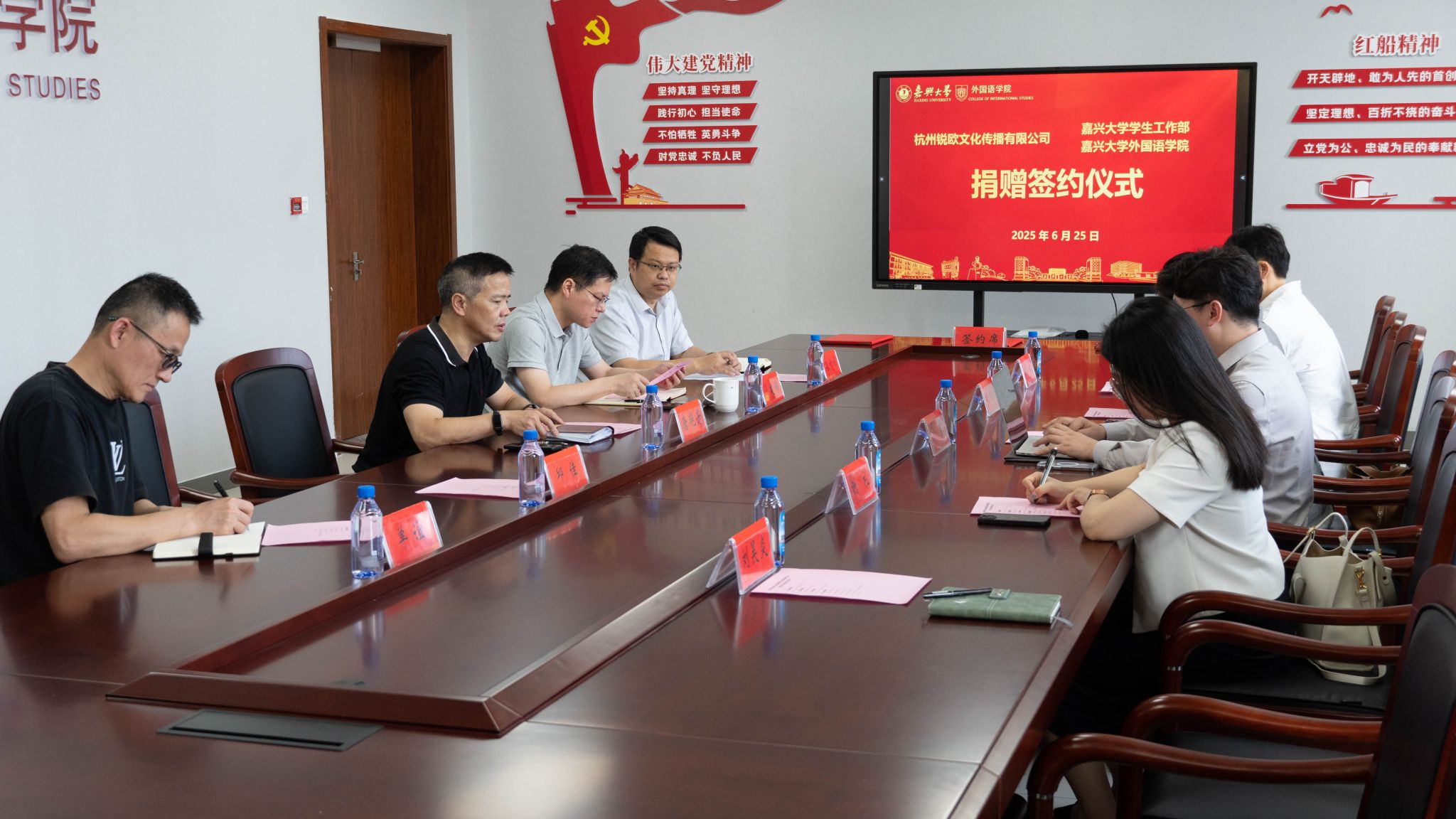 6月26日上午,av在线 与杭州锐欧文化传播有限公司在兴德楼南楼516会议室举行校企合作签约仪式暨欧罗教育发展基金捐赠签约仪式。校党委统战部常务副部长、学生工作部部长葛建伟,杭州锐欧文化传播有限公司董事长朱烜、学院党政班子等相关人员出席签约仪式。仪式由学院党委副书记张啸峰主持。