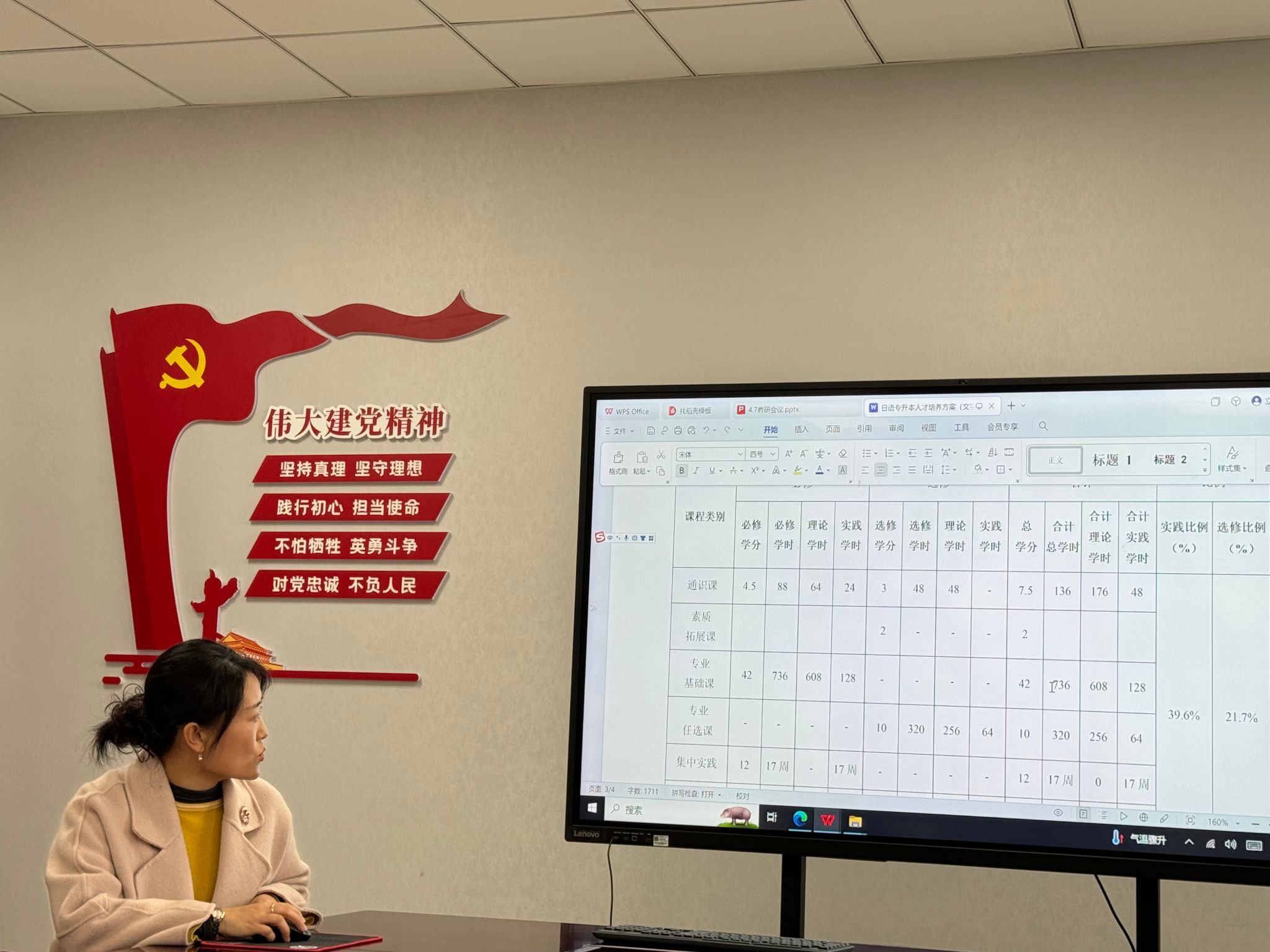 之后,教研室主任王雪老师就这学期实施的毕业论文收尾工作与老师们进行了交流。她说,日语专业积极推动并实施毕业论文,2024届学生论文工作已近尾声。目前,因为学校创大成功,需要调整毕业论文设计规范,希望老师们认真指导学生规范提交材料,力争创大后的第一期毕业论文高质量完成。