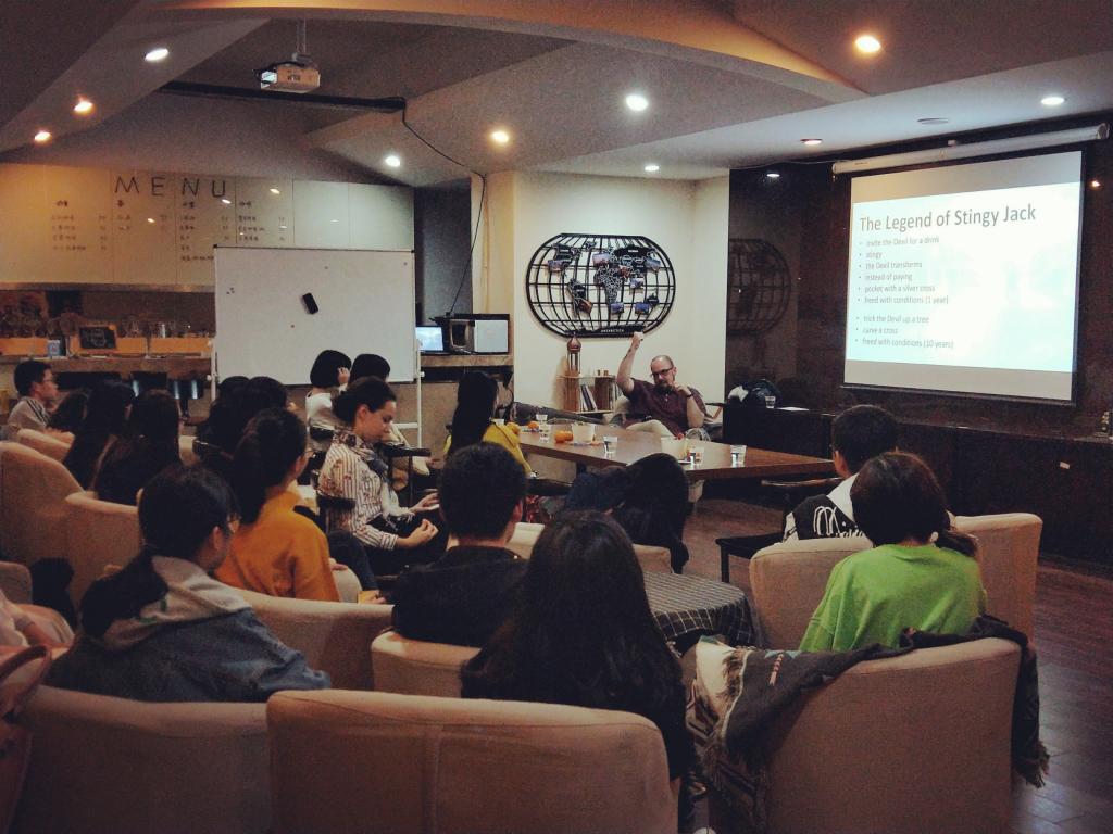 活动现场,Nathan以亲切、幽默的方式向大家介绍了万圣节的历史和由来传闻。配合两三个万圣节小故事,现场气氛高涨。