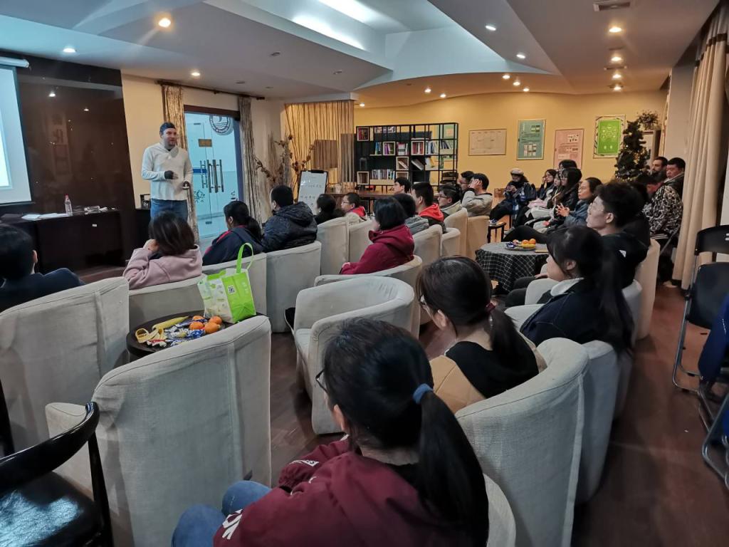2019年11月28号星期四晚18:30,由av在线 学习部主办的外教沙龙活动在咖啡吧如期举行。本次外教沙龙的主讲人是Kseniia和Daniel两位老师。大家在本次活动中互动交流,锻炼英语口语,学习西方文化风俗知识。