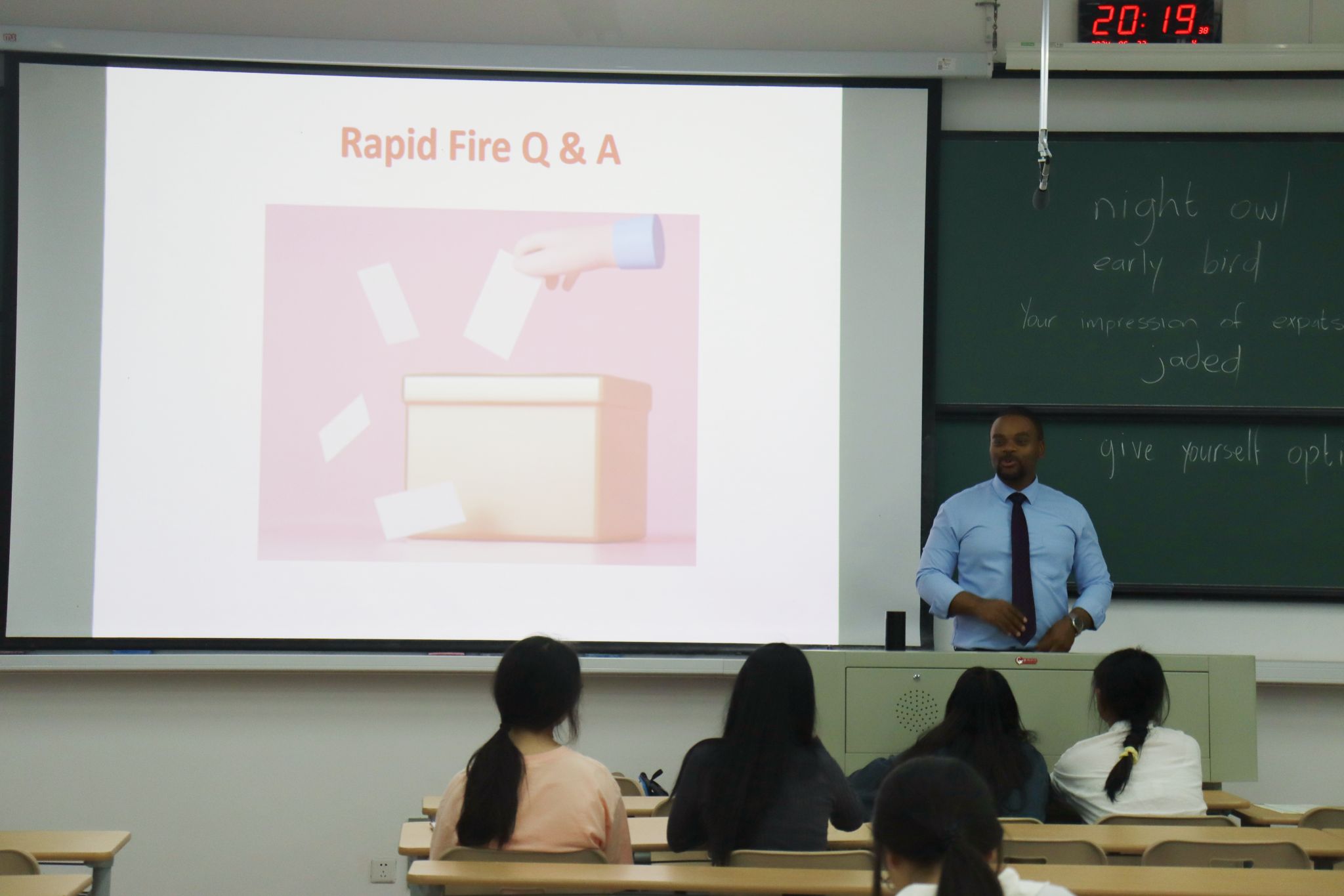 主题分享一结束,Kay亲切回答了同学们对他及此次活动主题的相关提问。活动后,学生们纷纷表示此次经历激发了他们进一步学习英语的兴趣,提高了他们的口语表达能力,增强了他们口语表达的信心。本次外教沙龙在愉快的氛围中圆满结束。
