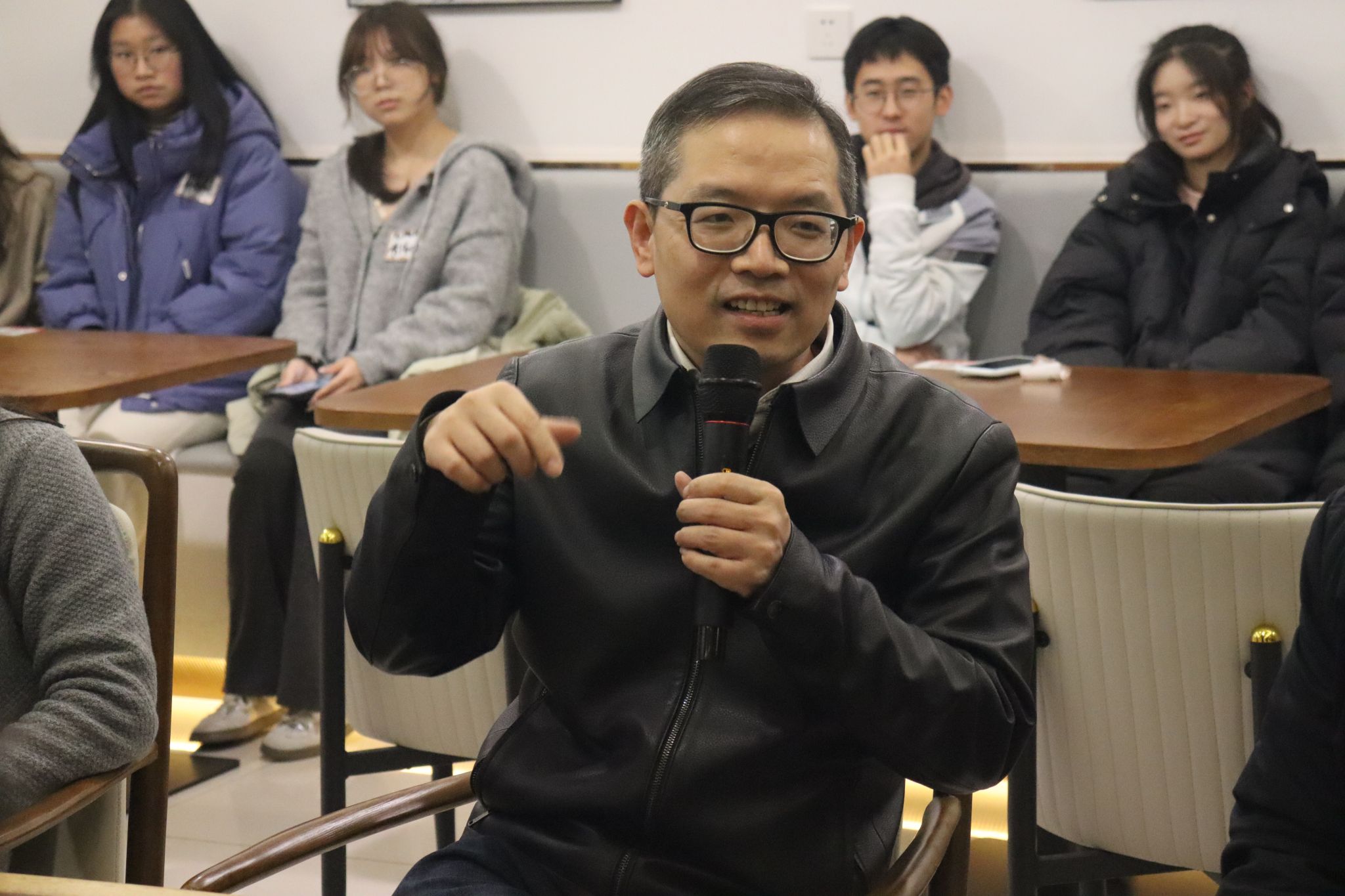 12月12日晚,av在线 2024-2025(1)最后一场英语角在图书馆尚书吧成功落下帷幕。av在线 副校长周宏伟、av在线 院长唐艳芳和副院长邱佳以及特邀嘉宾西班牙语翻译员姜鸿昊先生等亲临现场,与同学们就“Career Planning”共同开启了一场轻松愉悦且极具指导性的英语交流盛宴。