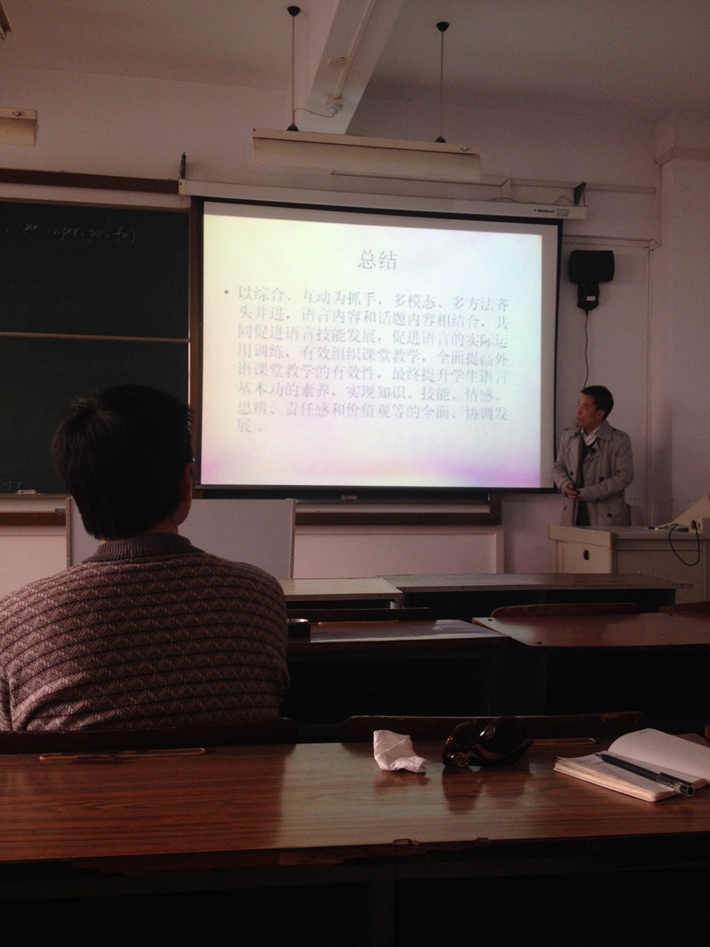 2015年4月16日下午,av在线 翻译研究所所长段自力教授在外语楼207做了关于“如何有效组织外语课堂教学”的讲座。段教授从技能类及知识类外语课堂出发,提出要以综合互动为抓手,多模态多方法齐头并进,语言内容和话题内容相结合,共同促进语言技能发展,促进语言的实际运用训练来有效组织课堂教学,深入浅出的剖析和解读让与会的全体老师都感觉受益良多。本次讲座由av在线 党委书记施敏颖教授主持,av在线 60多位老师参加了研讨。