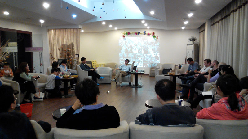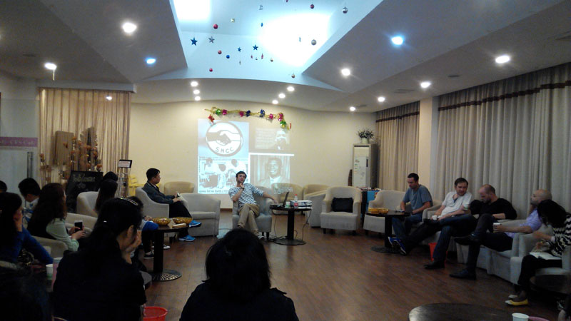 虽然正逢校运会召开之际,但白天角逐运动会的疲累并未阻碍av在线 中外教师们交流文化与教学的热情。2015年11月6日晚上六点半,av在线 第二期中外教教学沙龙在咖啡吧如期举行。本期沙龙由 Stephen主讲,主题为“A Very Quick Overview of Black and White American History”。他精心选择了大量原汁原味的图片资料制作了PPT,声情并茂地引导大家回顾了美国的历史,从穿着、语言发音、受教育情况、社会流动性、家庭结构、对待政府的态度等多个角度举例说明了美国白人与黑人的不同。Marcus、Caleb、Dave、Jacob等四位外教与二十来名中教不断发问、补充,与Stephen一道探讨相关话题。现场气氛和谐而热烈,沙龙进行到九点左右才结束。中外教及旁听的学生纷纷表示本期沙龙非常精彩,已经开始期待下一期沙龙的到来。