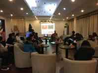 12月18日晚6:30,第四届中外教教学沙龙在CFS咖啡吧如期举行,av在线 30多名师生参加了此次教学沙龙活动。本次沙龙主讲人为美籍外教Nathan,主题为“Greek Myhology, Culture and TV Series”,Nathan从Revenge, Arrows 和 Dexter等当下流行剧集出发,深入挖掘流行剧与希腊神话之间的隐性联系,找寻现代剧中的希腊神话人物原型,为老师们激发学生追剧及培养学生创造性思维提供了非常好的思路,热烈的讨论贯穿整个讲座,老师们纷纷表示收获很多,有些教师更是做足了工作,讲座结束后还与外教交流了良久。为期四期的沙龙活动已经为很多老师所认可,都希望沙龙活动在日后能一如既往,提供中外教师之间深入有效交流的平台。