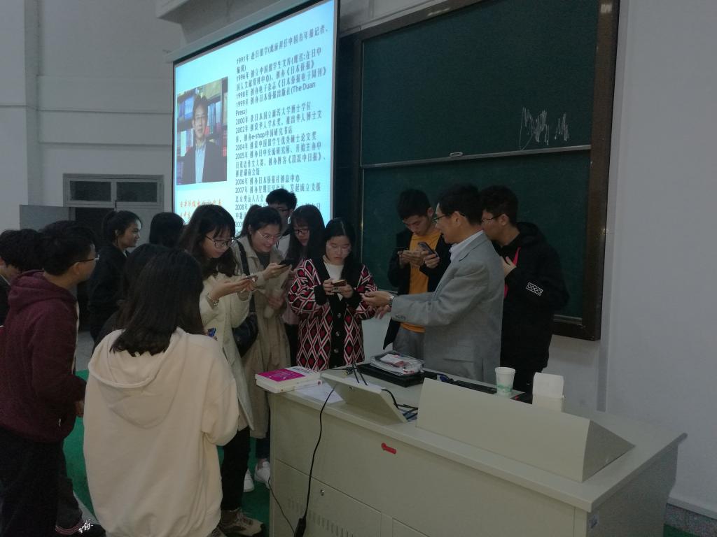 四月的嘉院,草长莺飞,满眼生机;四月的外院,同心同德,共谋发展。4月24日晚,在外语楼310教室,日语专业师生济济一堂,认真聆听了日本侨报出版社社长段跃中先生的讲座——“如何在日本讲述中国故事”。“我们以出版中国和中日交流内容的日语图书为主,在海外讲述‘中国故事’,这是心系祖国的所有华侨和华人的使命”。段先生由此开始娓娓道来,讲述了他旅日近三十年始终如一致力于中日民间友好的传奇故事。