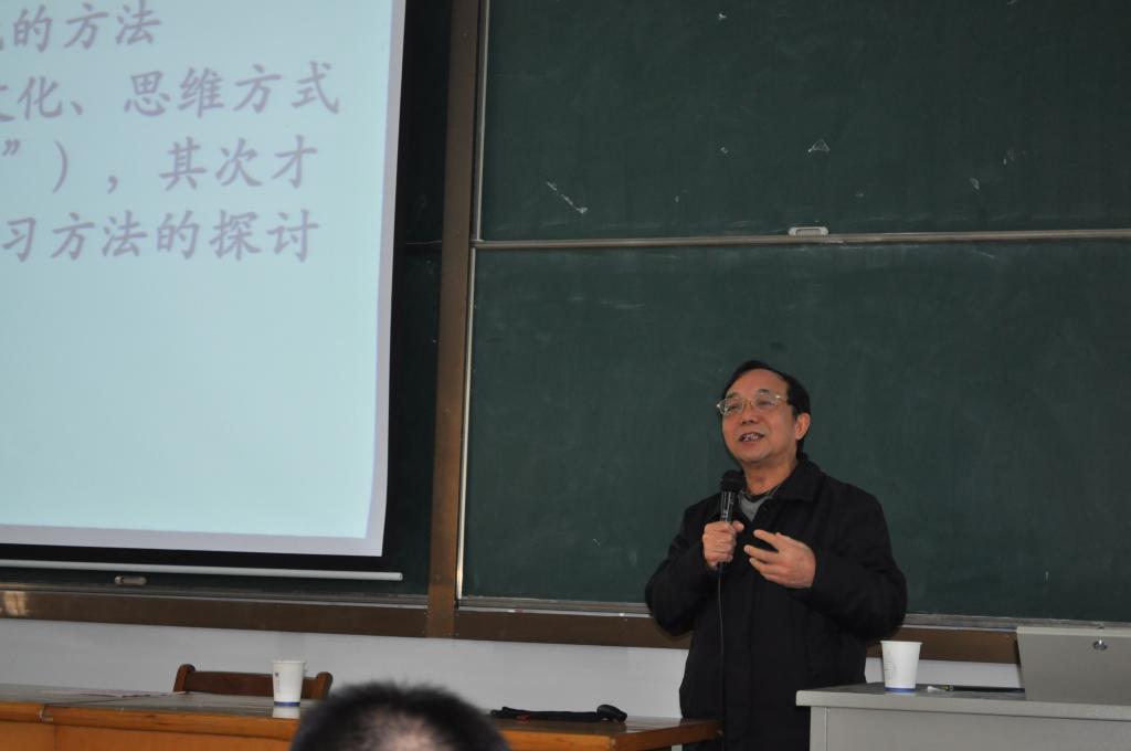 2019年12月5日下午,应av在线 邀请,华东师范大学张春柏教授在外语楼310作了一场题为《外语学习的“道”与“器”》的学术讲座。讲座由唐艳芳院长主持,部分教师和百余名英语专业学生参加了本次讲座。