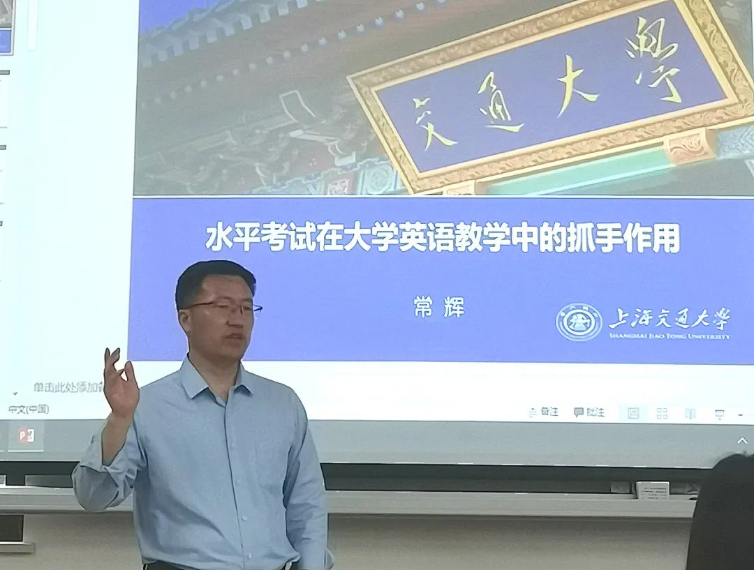 常教授首先介绍了上海交通大学英语水平考试的背景和发展历程,指出了解学情和充分调研是水平考试研制的前提。然后,常教授介绍了水平考试的题型、分值、成绩解释等内容,指出学习是整个系统的中心,测试是整个系统的抓手。以考促学,以考促教,测评的主要目的是评估学生学习效果和教师的教学效果,并为学习和教学提供反馈,从而为学生调整学习内容,教师调整教学安排等提供有力参照。随后,常教授讲述了水平考试的反拨效应以及水平考试的标准化建设。上海交通大学英语水平测试经过多轮改革与建设形成了诸多特色,测试内容既强调测试任务的真实性和综合性,重视语言运用,又重视对学生人文素养和思辨能力的考查,评分方式紧跟时代发展,引入人工智能评分技术等。最后,常教授也分享了基于水平考试的教研和科研成果,为av在线 教师的科研发展指点迷津。