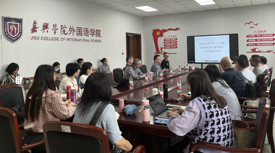 10月27日下午,嘉兴学院av在线 邀请南通大学av在线 单谊教授在兴德南楼516会议室作了题为《话语标记语“你知道”的音形义系统韵律实验分析与模型建构》的专题讲座。院长唐艳芳教授主持本次讲座,学院领导及教师代表20余人参加讲座。