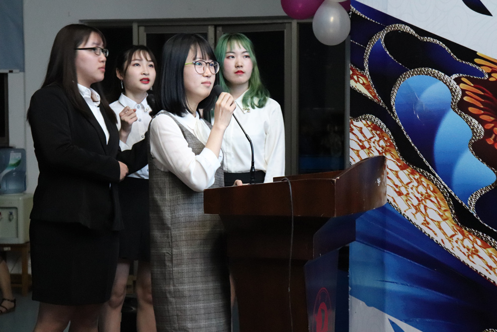 日语152班的陈梦涵、马滢哲、朱逸琳、赵淑婷四位同学的《恋爱研究所》片段,女音甜美,四人迥异,声线多变,完美收官,夺得一等大奖。