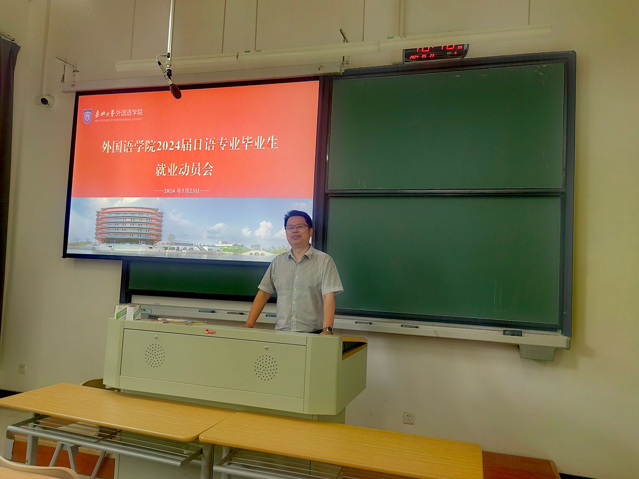 多年来,日语专业的学生就业率一直名列学校前茅。通过今年毕业推动会和动员会,我们相信,同学们一定会积极就业,在社会大环境中淬炼自己,实现人生价值。在召开动员会的当天,日语专业举办了毕业生实习答辩。在答辩中,我们真切地感受了同学们实习后的成长,多数同学表示已找到了一份心仪的工作;也有的同学准备参军,进一步磨炼自己;还有的同学希望老师们帮忙指导在多份工作中做出选择;更有同学决定到国外深造学习等等。总之,我们真诚希望,2024届日语专业所有毕业生一定会不负时光,勇敢步入社会,拥抱美好前程!
