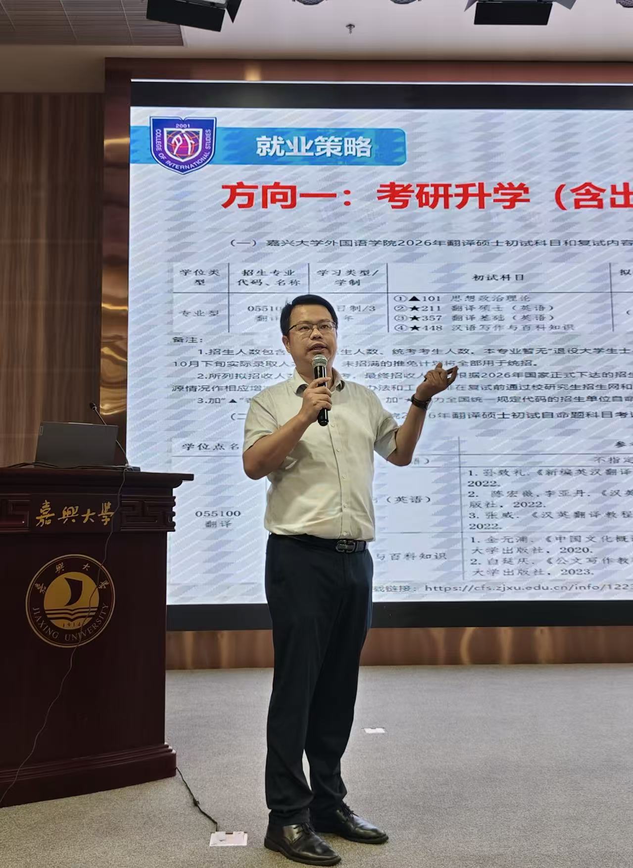 10月15日晚,av在线 在图书馆一楼报告厅举行2026届毕业生就业动员会。学术副院长单谊教授应邀为毕业生做“研途有你勇攀高峰”主题报告,全体2026届毕业生参会。会议由学院党委副书记张啸峰主持。