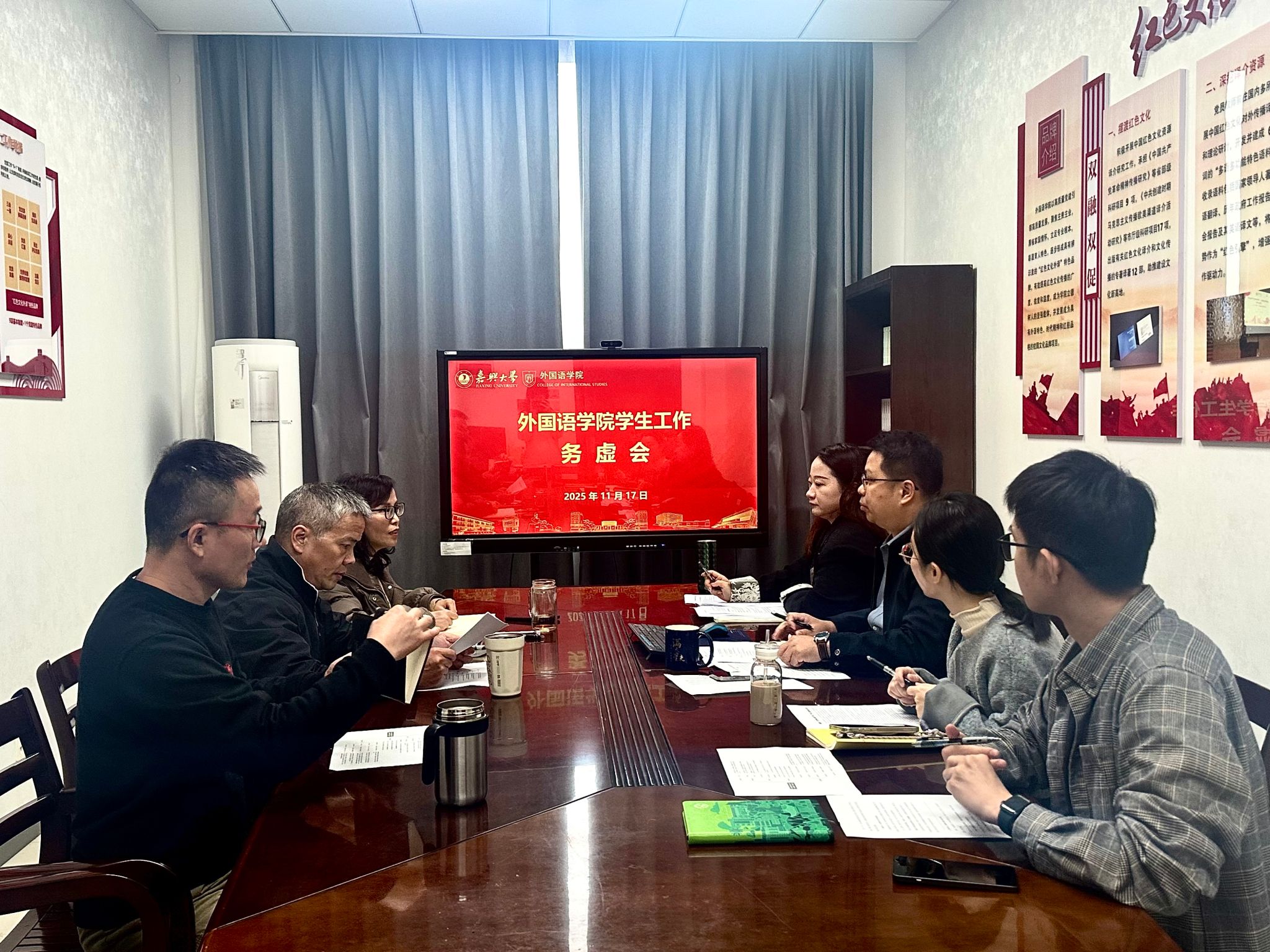 深入实施新时代立德树人工程,提升av在线 学生思政教育质效,11月17日,av在线 在兴德南楼521会议室召开学生工作务虚会,围绕“红译外院”思政育人体系的系统构建展开深入研讨。学院院长唐艳芳、党委书记刘巧芝、学术副院长单谊出席会议,全体辅导员参会。会议由学院党委副书记张啸峰主持。