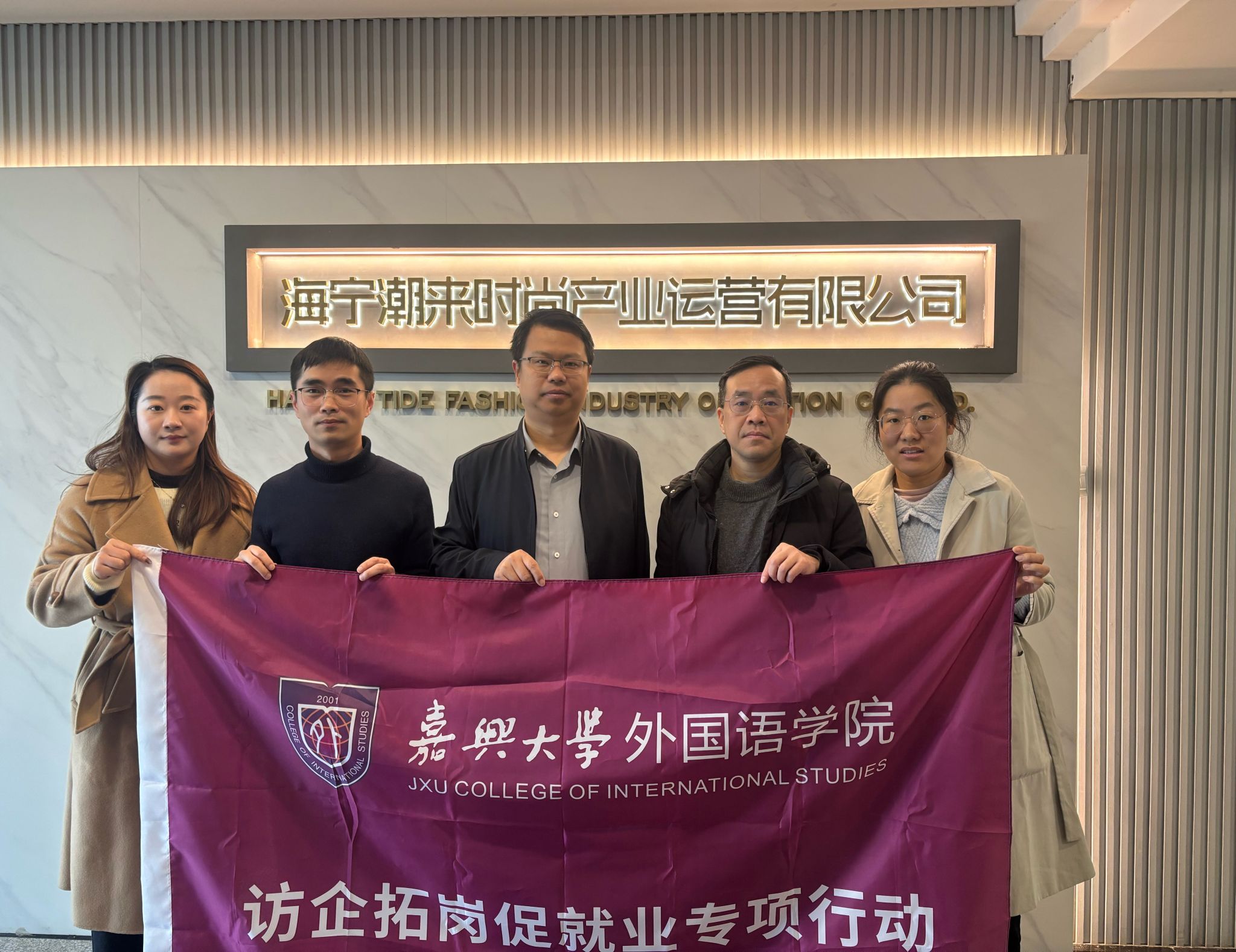为深入贯彻落实学校“优企引才”定向访企拓岗促就业专项行动部署,精准对接优质企业用人需求,3月13日,av在线 党委副书记张啸峰带领英语系教授肖欢、辅导员及学生代表一行赴海宁开展“优企引才”定向走访,先后走访海宁中国皮革城经营管理有限公司、浙江海象进出口有限公司。