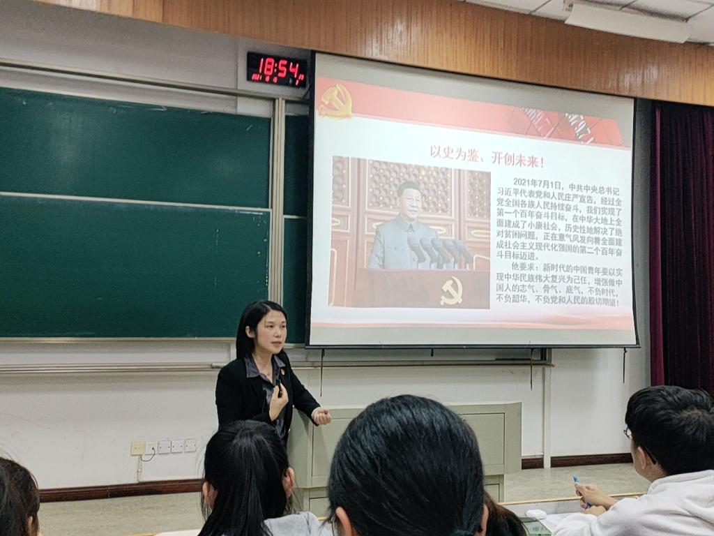 课上,陈部长先以时间为主线,佐以生动翔实的事例,向学员们讲述中国共产党是中国特色社会主义事业的领导核心,代表中国先进生产力的发展要求,代表中国先进文化的发展方向,代表中国最广大人民的利益。随后,陈部长以习近平总书记系列重要讲话为出发点,阐述了人民群众在中国共产党建党思想中占据的重要地位,点明了中国共产党人的初心和使命——为中国人民谋幸福,为中华民族谋复兴。习近平总书记在庆祝中国共产党成立100周年大会上首次概括阐述了中国共产党的伟大建党精神,指出伟大的建党精神是中国共产党永葆青春的“精神密码”。陈部长在党课中鼓励学员们作为红船畔大学的学子,要践行红船精神,赓续伟大建党精神的红色血脉。不忘初心,牢记使命,继承先辈的光荣事业,为实现中华民族的伟大复兴矢志前行。