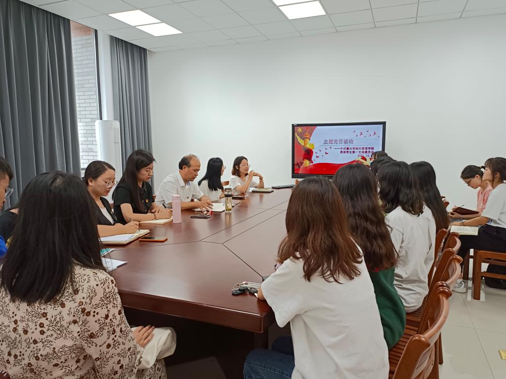 为扎实推进党史学习教育,进一步提升学生党员的党性修养,引导学生党员担负起时代赋予的责任和使命,av在线 英语学生第一党支部于10月14日下午在兴德楼513开展了主题党日活动。校党委委员、副校长杨培强,学院党委书记周钰、副书记朱莹及支部全体党员同志出席了本次活动。本次活动由支部书记胡笳丽主持。