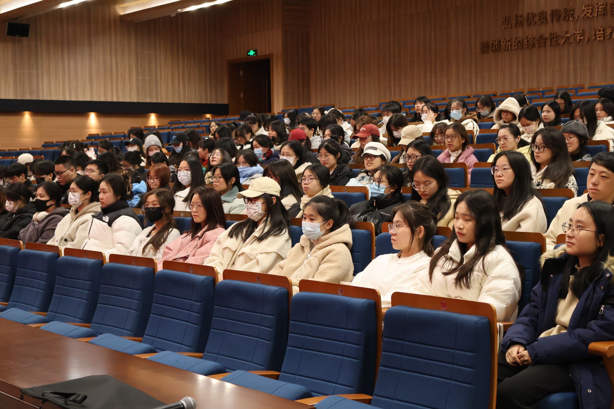 11月30日晚,av在线 在图书馆报告厅举办习近平总书记考察浙江重要讲话精神宣讲会。本次宣讲会由av在线 党委副书记朱莹主持,嘉兴学院红船精神研究中心教师刘俊峰主讲,各学生支部书记、学生党员、入党积极分子、学生党员之家办公室工作人员参加宣讲会。