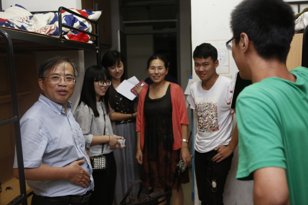 9月17日晚19时,av在线 新生报到工作圆满完成。校党委委员、组织部部长钱方明在av在线 院长陶丹玉、党委副书记周钰的陪同下,走访了av在线 2015级新生寝室,慰问新同学。