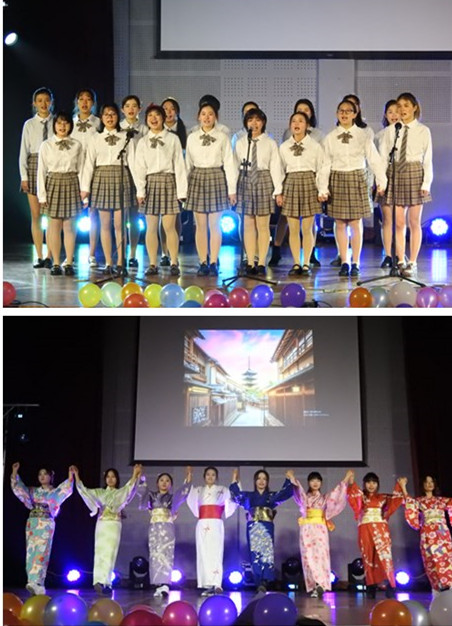 此次外语风采系列展示分为三个篇章。篇章一,徐欢同学的日语朗诵《風景開眼》(ふうけいかいがん)。外院表演队演绎莎翁笔下经典爱情故事《罗密欧与朱丽叶》,他们饱含深情的演绎,诠释了他们心中这段美好的爱情故事。av在线 的老师们带来《外文歌曲串烧》,分别展示了英、日、法、韩歌曲的无穷魅力,充满活力的表演引得台下呼声连连。接下来是两位女生带来歌曲《我要你》,迷人的歌声与月色同样撩人。歌舞同行,在动人的歌声之后,是优雅的舞蹈同行。魏诗浓同学带来的中国传统舞蹈《丽人行》,让我们近距离的感受中国传统文化之美。七位同学带来日剧play《一公升的眼泪》,教会我们即使人生充满坎坷,也要热爱生活。篇章二,日语162班全体同学带来的日语版《那些年》,我们可能会在四年的大学生活中错过许多,但希望没有错过彼此。之后,金航婷同学为我们展示她的职规作品《红船先锋行—我的“红色”双语讲解之路》,优秀的学姐是我们学习的榜样。日语181班带来的日语趣味歌舞表演《Tokyo Bon》,通过唱歌、跳舞来享受学习,是一种很好的学习方法。日语外教老师们为我们带来《それが大事》,语言虽不同,但同样传达出对生活的热爱与激情,这就是歌曲的魅力!篇章三,五位外院学子带来乐队表演《Radioactive》&《Creep》生活虽充满挫折与坎坷,但仍保持积极的态度,现场洋溢着青春气息。萧楚炘同学的英语朗诵《Crossing the river by feeling for the stones》,让我们对流利纯正的英语口语有了更直面的了解与赞叹。最后,是最令人期待的模特秀,热烈的气氛将整场晚会推向了最高潮。