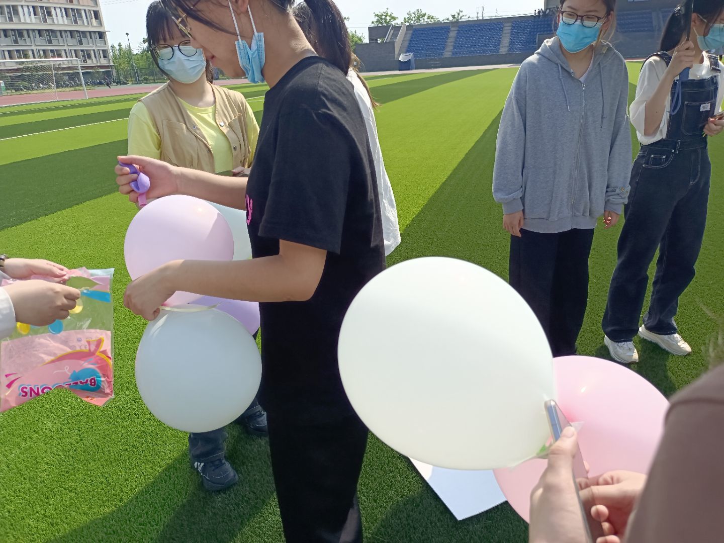 本次活动共分为三个部分:首先是预热的集体游戏“飞机头”,活动目的是通过同学之间的互相配合,使他们感受人与人之间的互相信任,同时也激发同学们的游戏兴趣和激情。第一部分结束后,现场的同学们很快摆脱了紧张的情绪,进入了游戏状态。到了“气球爆破”游戏环节,每位同学首先需要在他人的帮助下将两个气球绑在腿上,游戏开始后,同学们以挤破对方腿上的气球数量多者获胜。在一声声清脆的气球爆破声中,同学们的兴致达到了高潮。最后进行的是“你我的歌”小游戏,该游戏先将同学分为三组,每人分别唱出自己纸条上的歌曲来寻找和自己同组的小伙伴。