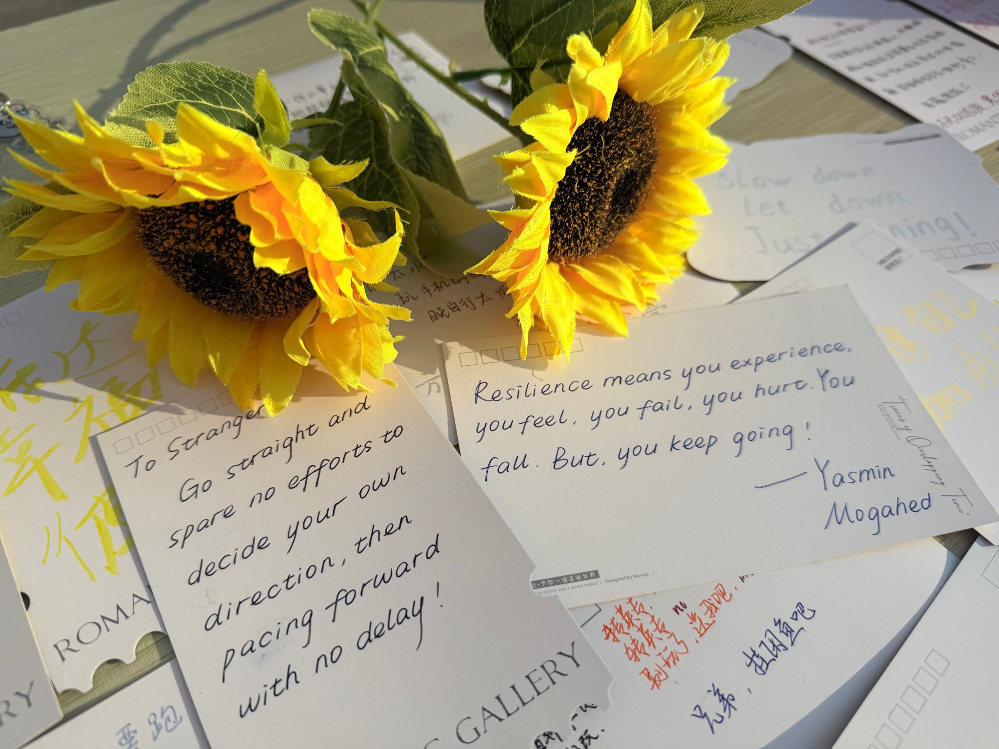 活动现场布置简洁温馨,长桌上摆放着向日葵与多种彩色卡纸。参与者可自取明信片,写下自己的心情或祝福语投入信箱,并随机抽取他人留言。在短短半小时内,信箱中已积累数十张真挚留言,“今天风很温柔”“别怕,明天会亮”等句子成为现场高频互动内容。av在线 学生会志愿者还在现场提供热茶与主题书签,进一步营造出温暖而宁静的交流氛围。