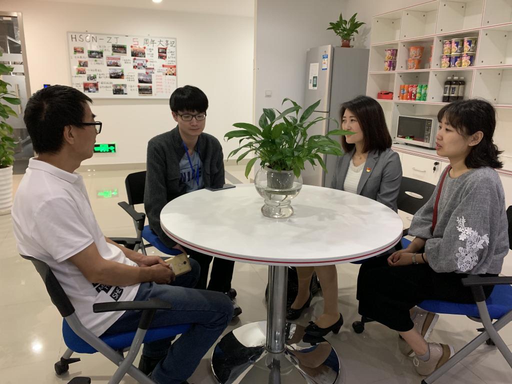4月25日,四位老师首先来到骐骥软件科技有限公司,该公司与某日企(世界500强)达成紧密合作关系,为其提供对日外包服务作业。叶乃松同学为党员教师们介绍了企业概况及其“尊重,共赢,进取”的公司文化,然后同老师们交流了实习内容及心得,他积极发挥了自己的日语优势从做翻译开始,同时又学习了网页测试,一步一步迈入技术领域。他希望一直坚持这条道路走下去,对自己的未来有着明确的规划。