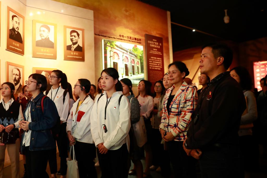 通过参观专题展览,师生们深刻体会到“一艘小船诞生一个大党”的伟大历程。中国共产党人正是从南湖红船起航走向全国执政,走过了新民主主义革命和社会主义新中国建设阶段,带领中国人民一步步从站起来、富起来、到强起来,直到今天为实现‘两个一百年’奋斗目标、实现中华民族伟大复兴中国梦而不懈奋斗。