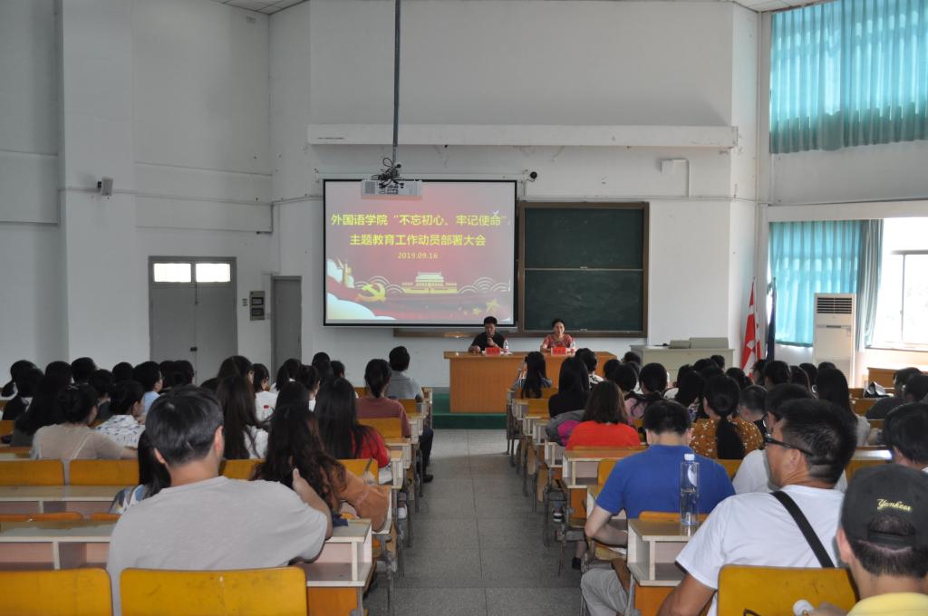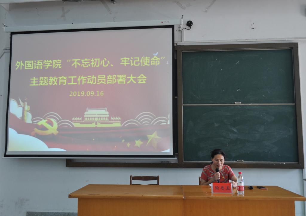 9月16日中午,av在线 在外语楼310召开“不忘初心、牢记使命”主题教育工作动员部署大会,深入贯彻落实中央和上级党委主题教育相关会议精神,特别是习近平总书记和省委、市委、学校党委领导的重要讲话精神,对学院开展主题教育进行全面动员部署。校党委组织部副部长、嘉兴学院“不忘初心 牢记使命”主题教育领导小组材料组组长张向阳参加了会议。院党委副书记、院长唐艳芳主持,院党委书记陶丹玉做动员讲话。