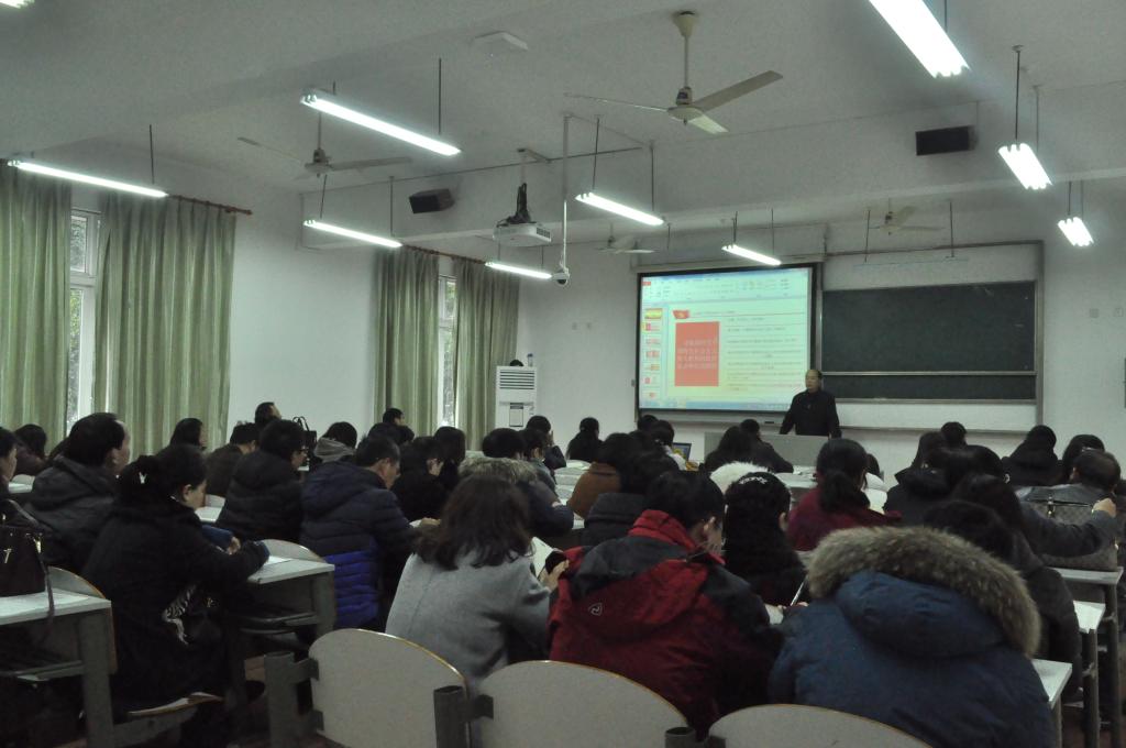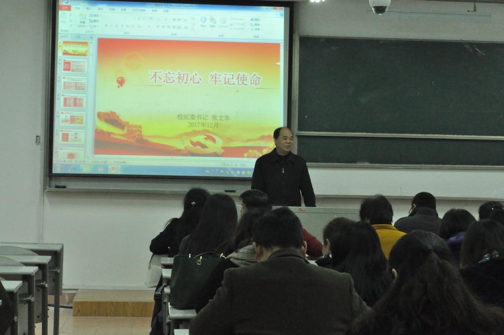 12月14日下午,av在线 在教一139举行政治理论学习会,校纪委书记张文华应邀为学院全体教师作党的十九大报告宣讲。宣讲会由av在线 党委书记陶丹玉主持,av在线 全体教师参加宣讲会。