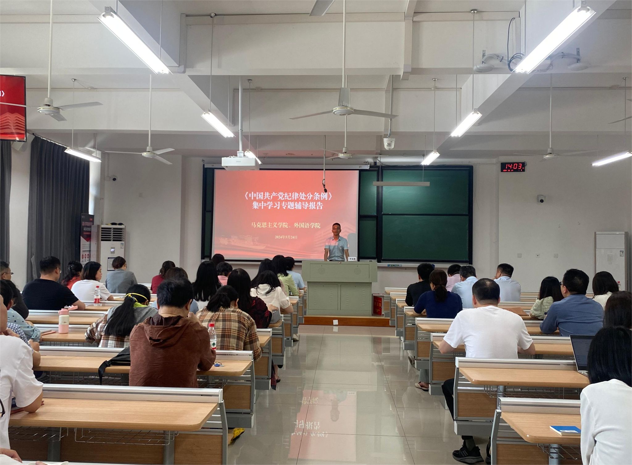 2024年5月24日下午,av在线 党委联合马克思主义学院党委,特邀浙江红船干部学院李益模副教授做党纪学习教育专题讲座。讲座由马克思主义学院党总支书记宋之霞主持,两院党员教师参加本次讲座。