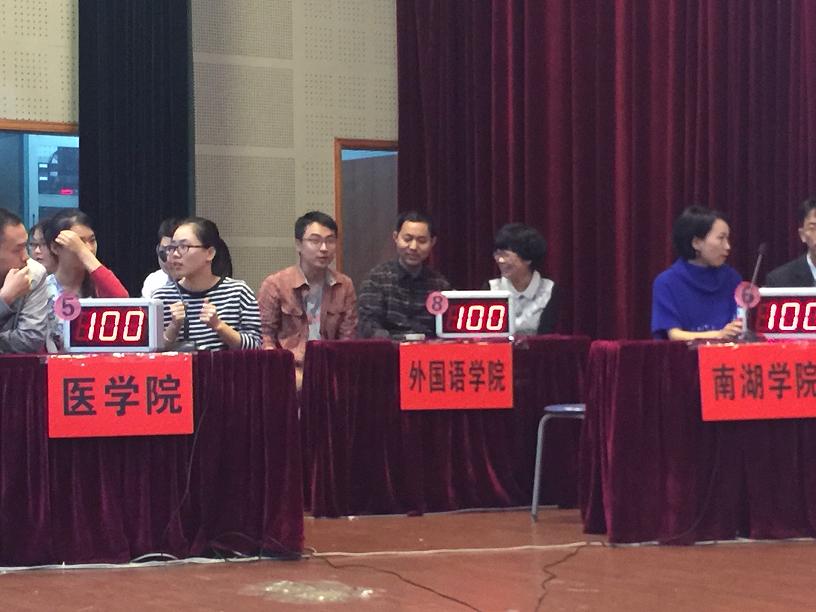比赛分必答题、抢答题和风险题三个环节。在第一环节中三位老师准备充分,正确回答了所有问题。接下来的抢答题环节选手们争先恐后,积极抢答,全场气氛高涨。比赛在风险题环节进入白热化,选手们不敢有丝毫懈怠。就算存在扣分的风险,但选手们一个个成竹在胸,全神贯注,为的就是能够抢夺到答题的机会。经过两个小时的激烈竞争,比赛获得了圆满成功。