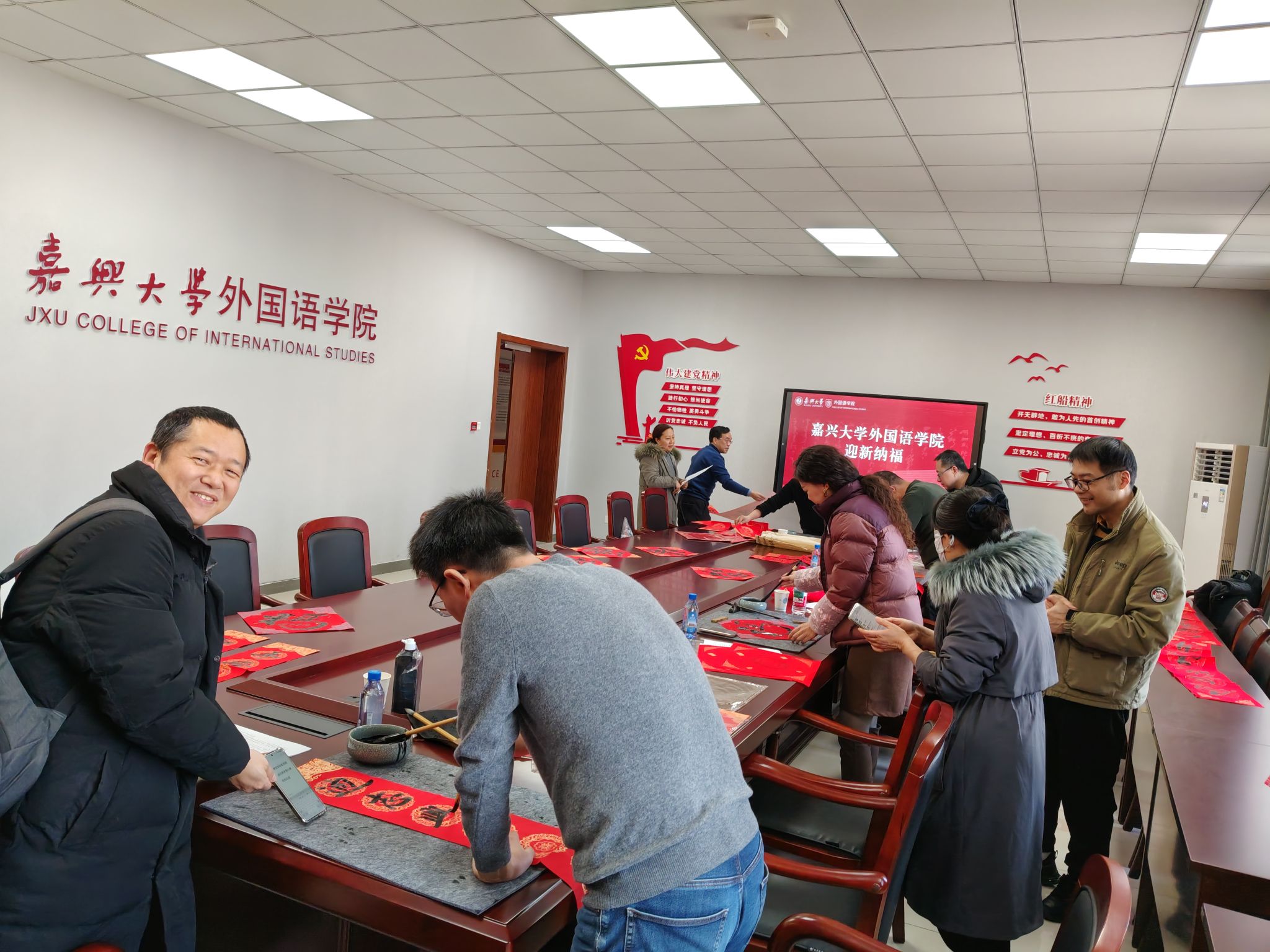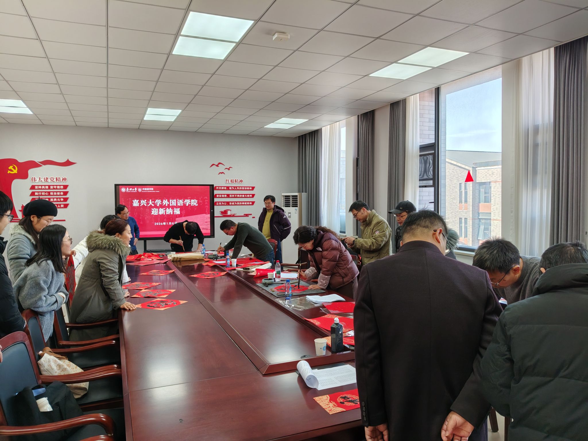 为弘扬中华优秀传统文化,传递学院人文关怀,1月8日中午,av在线 举办“迎新纳福”送春联活动。活动特邀av在线 南湖书画院童勇军、陈荣军、马国祥、高珂译等老师现场挥毫,以笔墨寄情,为全院教师送上诚挚的新春祝福。