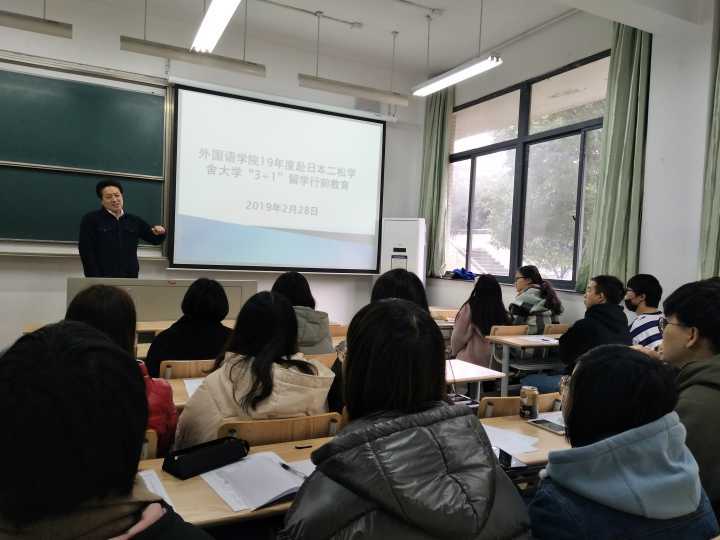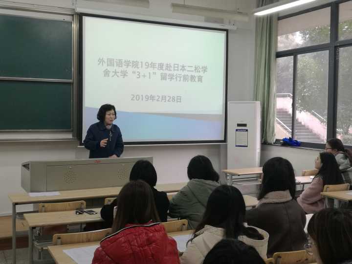 今年日语专业将有15名赴日本二松学舍大学“3+1”留学,这是av在线 派往日本二松学舍大学的第三批留学生。2月28日,av在线 为15名同学举办了赴日前的教育讲座。郭永恩副院长、外事处李月顺副处长以及日语系刘韵超主任参加了本次讲座,讲座由刘韵超主任主持。