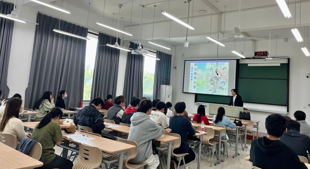 说明会上,苏君业老师首先回顾了冈山商科大学与国外开展国际交流合作近三十年的历史和成果。之后,她对冈山商科大学的地理位置、区域优势、专业设置、基础设施和师资力量等作了详细的说明。并通过图片深情回顾了av在线 与冈山商科大学的交流。自两校确立交流合作关系后,av在线 先后派出“2+2”项目学生15人,“3+1”项目24人,共派出39人。他们中有的学生毕业后继续在日深造,考取了日本的知名学府早稻田大学、神户大学、冈山大学和国际教养大学等大学的硕士研究生,也有的在日大正证券等大企业就职,回国后的同学也大多活跃在中国的日资企业。